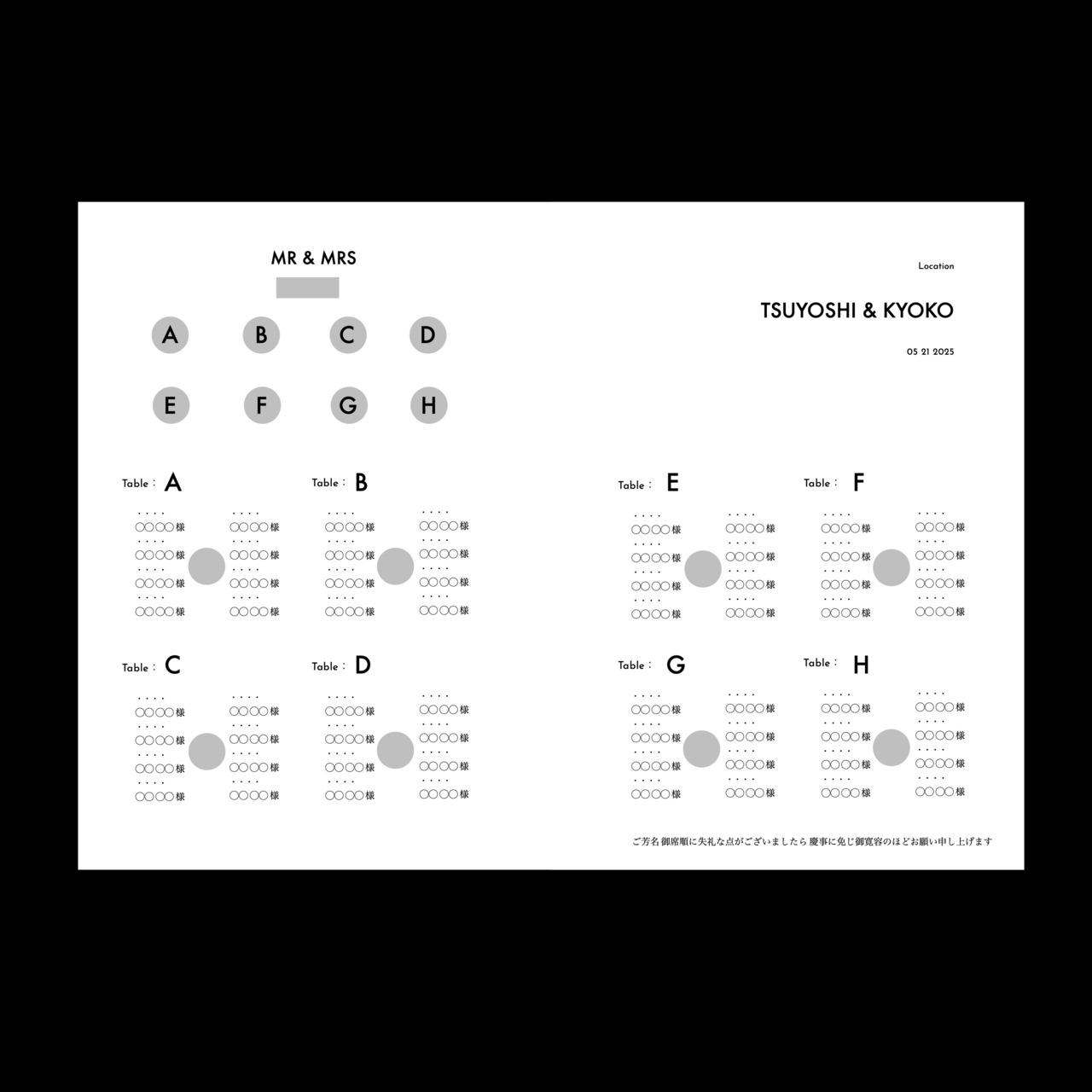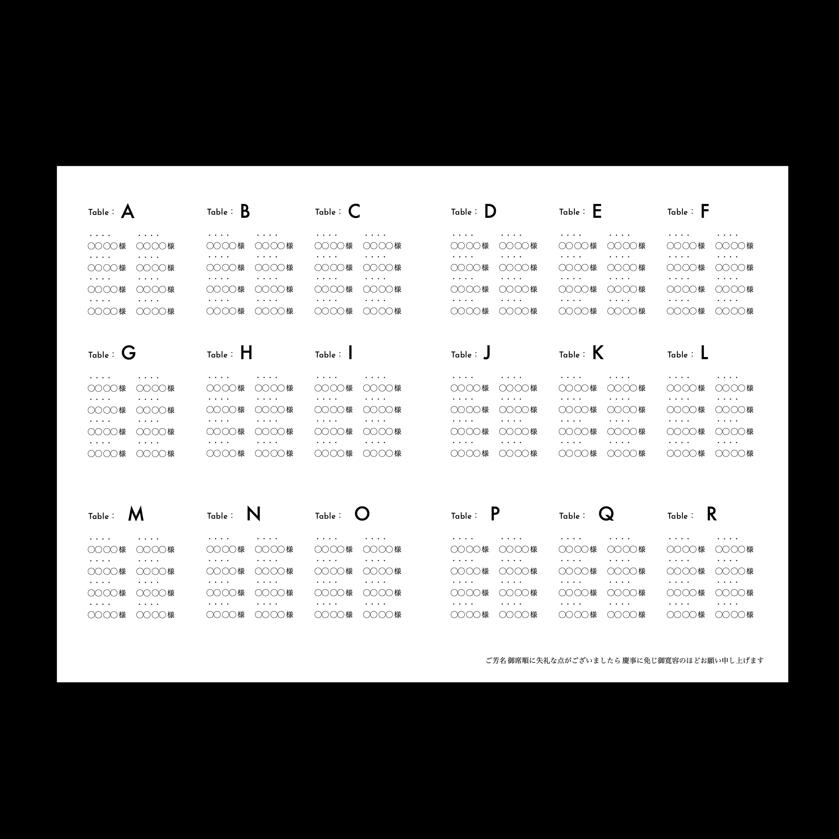 ※ 席次表をご希望の場合はおそれいりますが大人ご人数分に相当する数量のオーダーをお願いいたします。